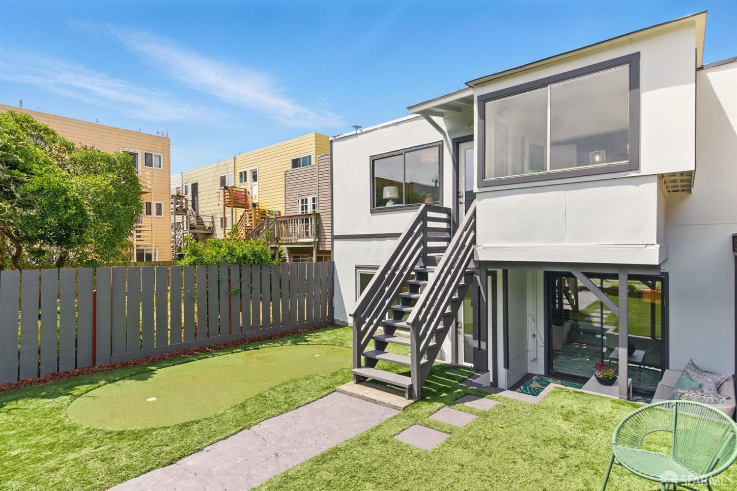 Looking for an epic beach house? Spanning almost 2400sqft, this move in ready home is so close to Ocean Beach, Golden Gate Park, many vibrant, fun, local businesses, and hubs of the Sunset Community. Inside, a bright, expansive living space flows into a stylish kitchen with bar seating perfect entertaining. 3 bedrooms and 3 full baths upstairs offer space without compromise. French doors open from the large primary suite to a sunny office overlooking the large, manicured backyard featuring two putting greens. The downstairs is seamlessly integrated, with 2 additional bedrooms, a full bath, laundry room, outdoor shower, and a deep 2-car tandem garage (plenty of storage for surfboards, bikes, and gear). Convenient access to N Judah, Lincoln Way, and Lower Great Highway keeps city commutes easy. So close to Hook Fish Co, Blackbird Books, Outerlands, Palm City, and Yoga Beach. Enjoy the best coastal lifestyle in SF at 1278 La Playa.