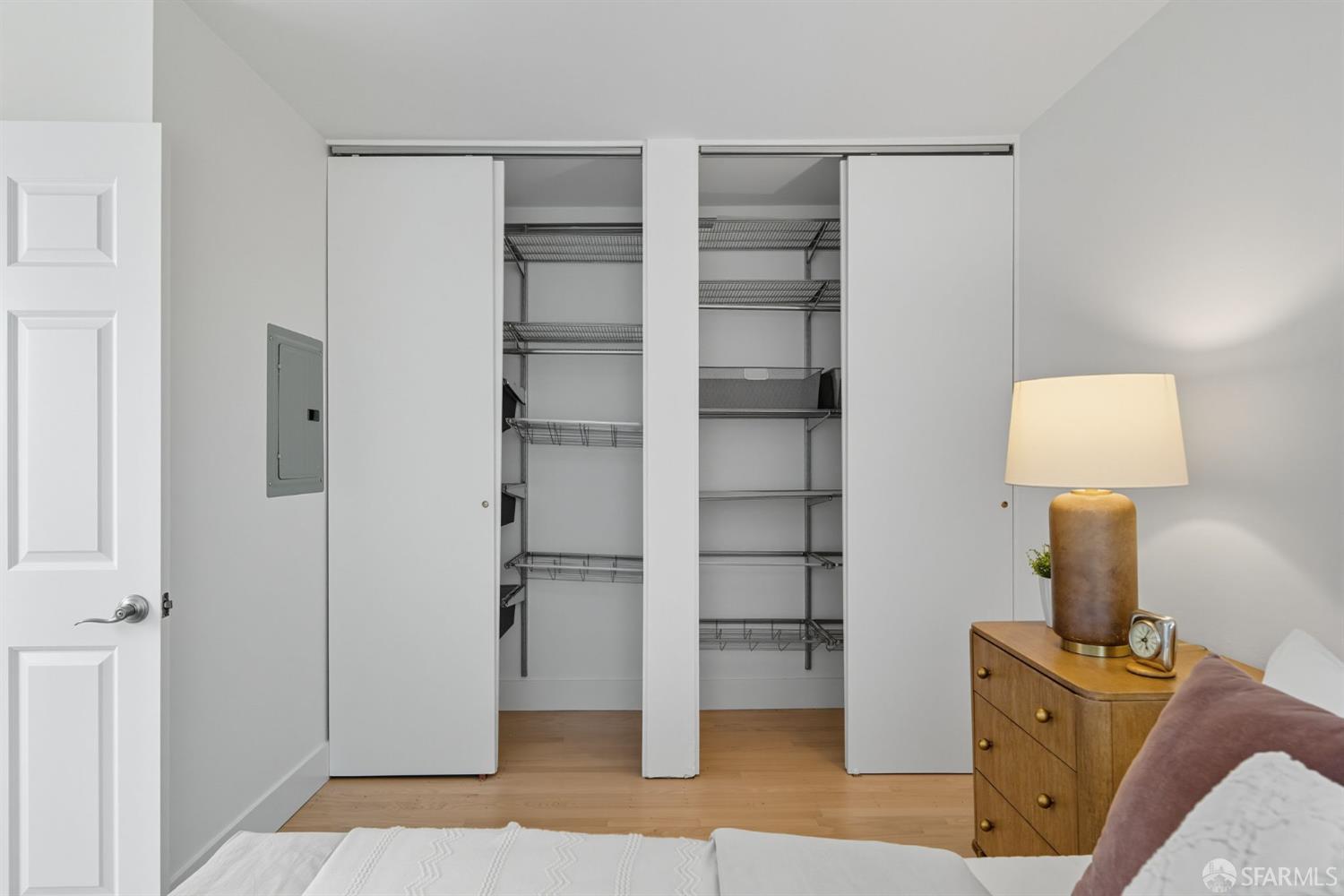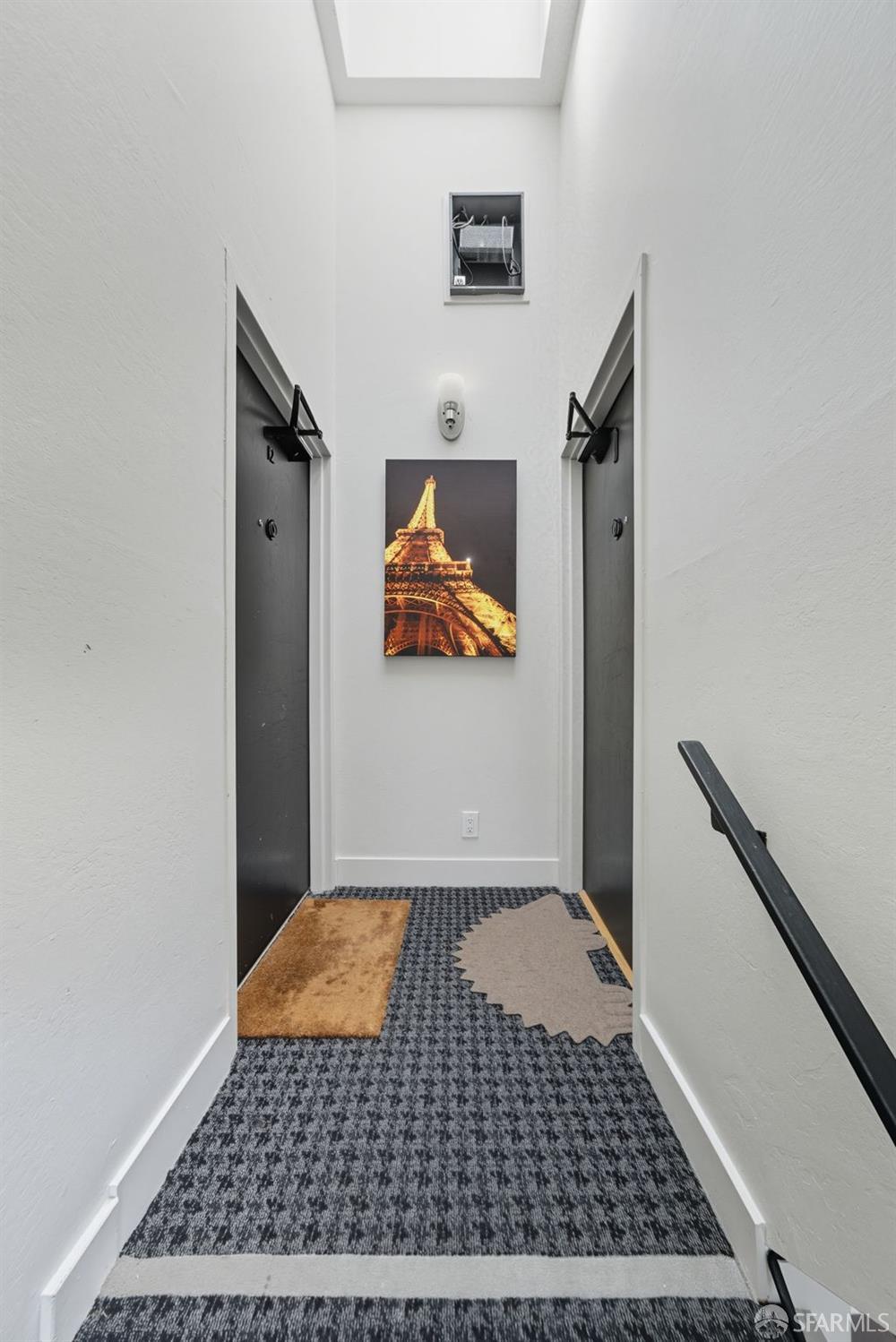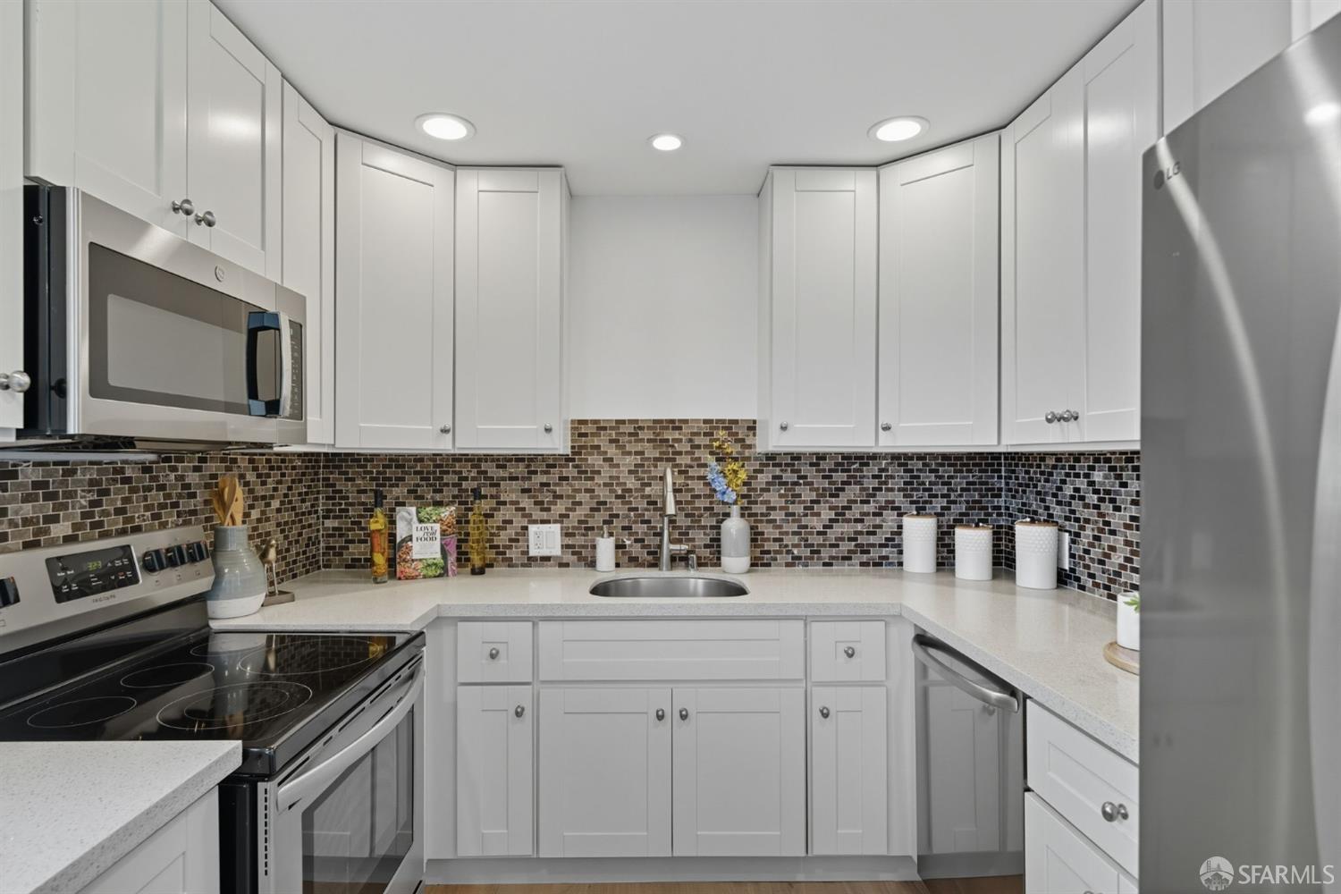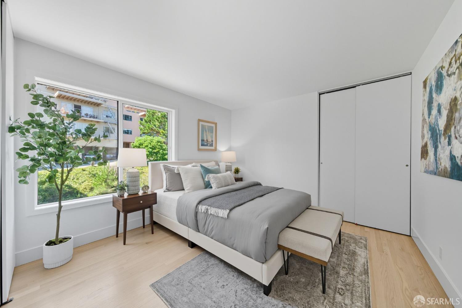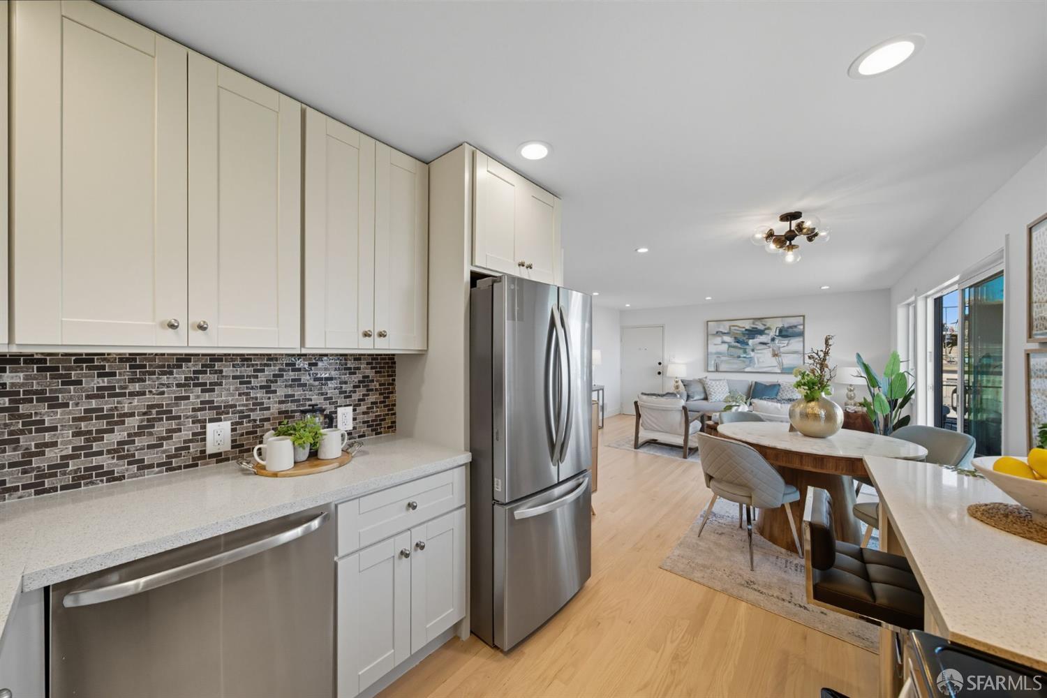Stunning top-floor 2BR/1BA Twin Peaks residence with panoramic SF skyline and bay views. Renovated home features hardwood floors, skylight, and thoughtful lighting throughout. Expansive living/dining area opens to generous balcony via oversized sliding doors, showcasing unobstructed views from downtown to East Bay and Mount Diablo. Modern kitchen includes terrazzo counters, tile backsplash, and premium stainless appliances. Dedicated office workspace maximizes the vista. Both bedrooms offer ample closet space, hardwood floors, and greenbelt views. Updated bathroom has new vanity, tub/shower, and skylight. In-unit laundry, single-car garage parking and storage complete the home. Prime Twin Peaks location with easy access to Diamond Heights, Noe Valley, West Portal, and Eureka Valley shopping/dining. Convenient MUNI/BART transit and highway access via 101/280. Tenancy in Common in well-maintained 12-unit HOA.