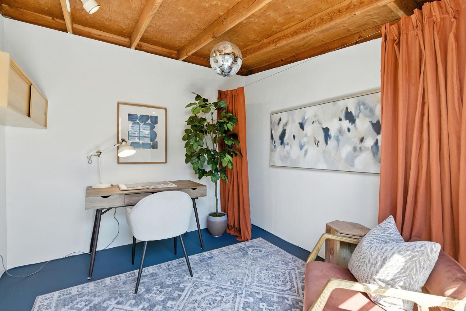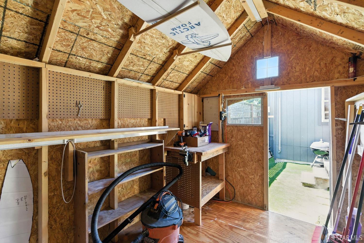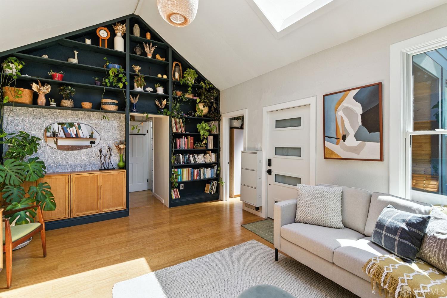Possibly the cutest house in San Francisco, this sophisticated cottage retreat sits privately positioned and thoughtfully designed for modern San Francisco living. Soaring ceilings and oversized skylights flood the open living space, anchored by a gas fireplace and custom built-ins. The stylish, updated kitchen cozies up to your adorable eat in dining nook. True indoor/outdoor living is achieved with the private deck dialed in with an amazing louvered pergola the perfect set up for entertaining or quiet mornings. The backyard also features a sweet standalone office and a rugged workshop. An epic firepit seating area overlooks your gated driveway which offers 2 car side by side parking with 220V access for EV charging and a sizeable storage shed for all your hobbies. Complete with a spacious primary bedroom featuring 2 closets, a cozy additional bedroom, and completely renovated bathroom with radiant heat, this turn-key gem showcases thoughtful updates throughout. Close proximity to Minnie & Lovie Park, MUNI M-line, and Ocean Street's vibrant dining and shopping scene, this coveted location delivers the ultimate urban-residential balance. 502 Plymouth offers the perfect balance of style and function to maximize your modern city lifestyle.